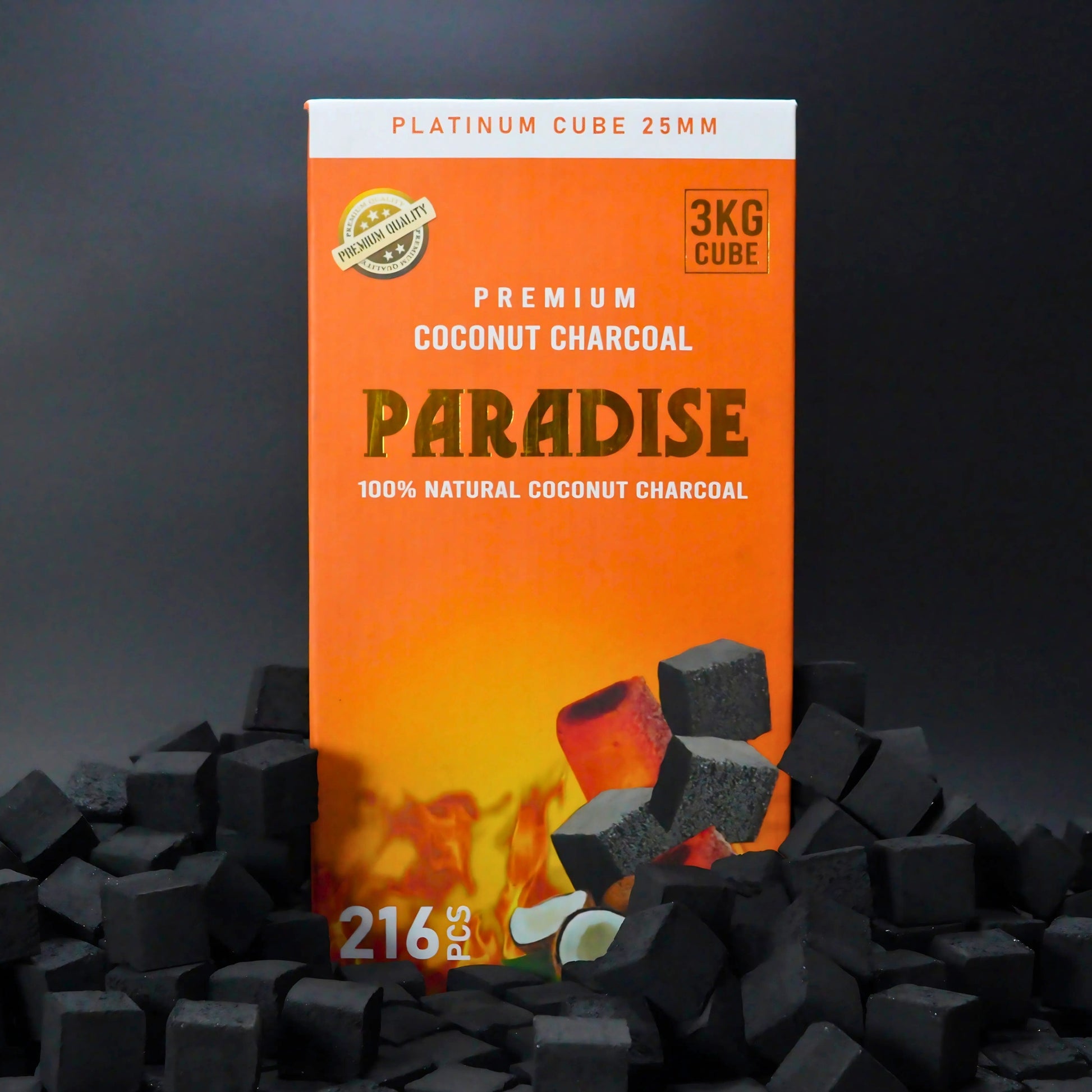 SHOP NOW!Paradise Coconut CharcoalShape: Cubes 25mmSize: 3Kg / 216 coalsParadise Coals are made from 100% natural coconut shell, providing a clean burn with minimal ash. Ideal for hookah enthusiasts, these coals ensure long-lasting heat and are perfect for extended smoking sessions.
