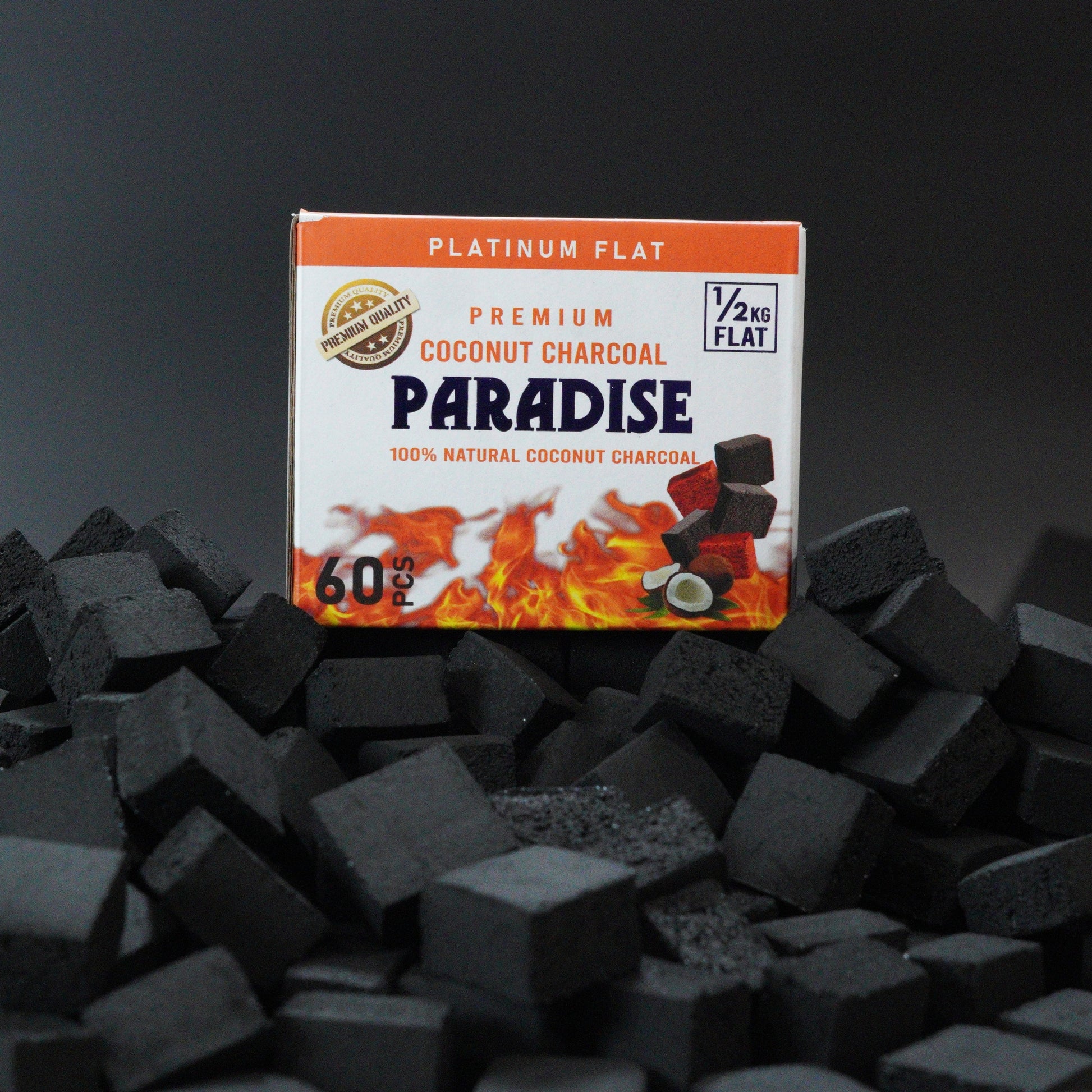 Paradise Coconut CharcoalShape: Flats 25*25*15mmSize: Half kilo / 60 coalsParadise Coals are made from 100% natural coconut shell, providing a clean burn with minimal ash. Ideal for hookah enthusiasts, these coals ensure long-lasting heat and are perfect for extended smoking sessions.